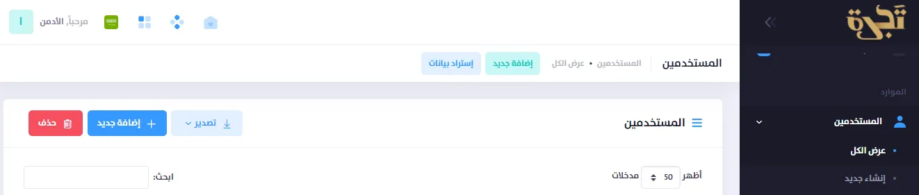 - المستخدمين: يمكنك من هذا الخيار رؤية جميع المستخدمين المسجلين في متجرك الإلكتروني، ويمكنك أيضاً إضافة مستخدمين جدد أو إضافة مشرفين على المتجر ومدراء للمتجر.